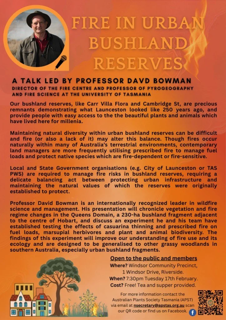 Professor David Bowman The Northern Group of the APST unvite you to attend a free talk by this renowned bushfire expert:When: 17 th Feb 2026Where: Windsor Community Precinct, 1 Windsor Drive, RiversideCost: This is a free event Home